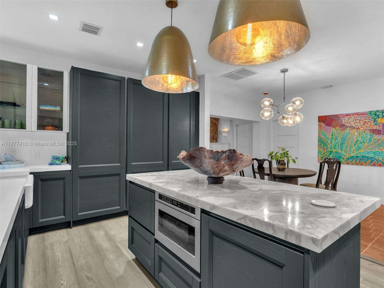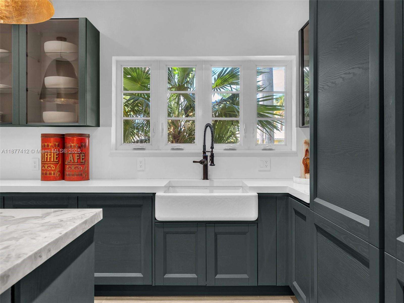 "Vintage Hip". Think Kelly Wearstler meets famed Architect Carlos B. Schoeppl and the result is "Pink Sands" on quiet Tyler St. surrounded by Royal Palms, cool ocean breezes and 3 blocks to the Beach. One of a kind restored Mediterranean Villa, circa 1940. On an oversized 12,000+ sq ft corner lot, the residence offers 4 beds, 5.5 baths, and a large, private pool with waterfall, cabana, and outdoor shower/bath. New primary addition, new kitchen with fine Italian cabinetry, Opustone imported marble island/backsplash, and high-end GE and Kohler appliances. Original Spanish tile floors, volume ceilings with exposed beams. Open layout all on one level. One block to Marina. "Our hearts skip a beat when we find a house that was designed by Schoeppl".