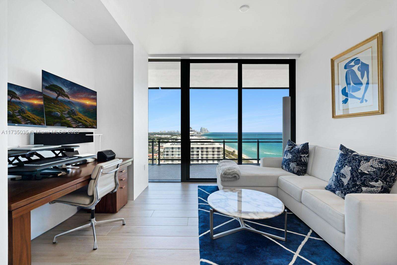 Residence 1601, located in one of Miami's most coveted buildings, offers an unparalleled living experience with breathtaking, unobstructed ocean and city views. This rarely available 4-bedroom, 3.5-bath home is delivered furnished and features eastern and northern exposures, seamlessly blending indoor and outdoor living. Floor-to-ceiling glass walls fill the space with natural light, while an expansive terrace showcases stunning panoramas. With modern finishes that enhance its effortless elegance, this residence presents a rare opportunity. Eighty Seven Park is situated close to world-class dining, shopping, and entertainment, and offers five-star amenities, including a full-service spa, two pools, private beach service, a fitness center, and an on-site restaurant.