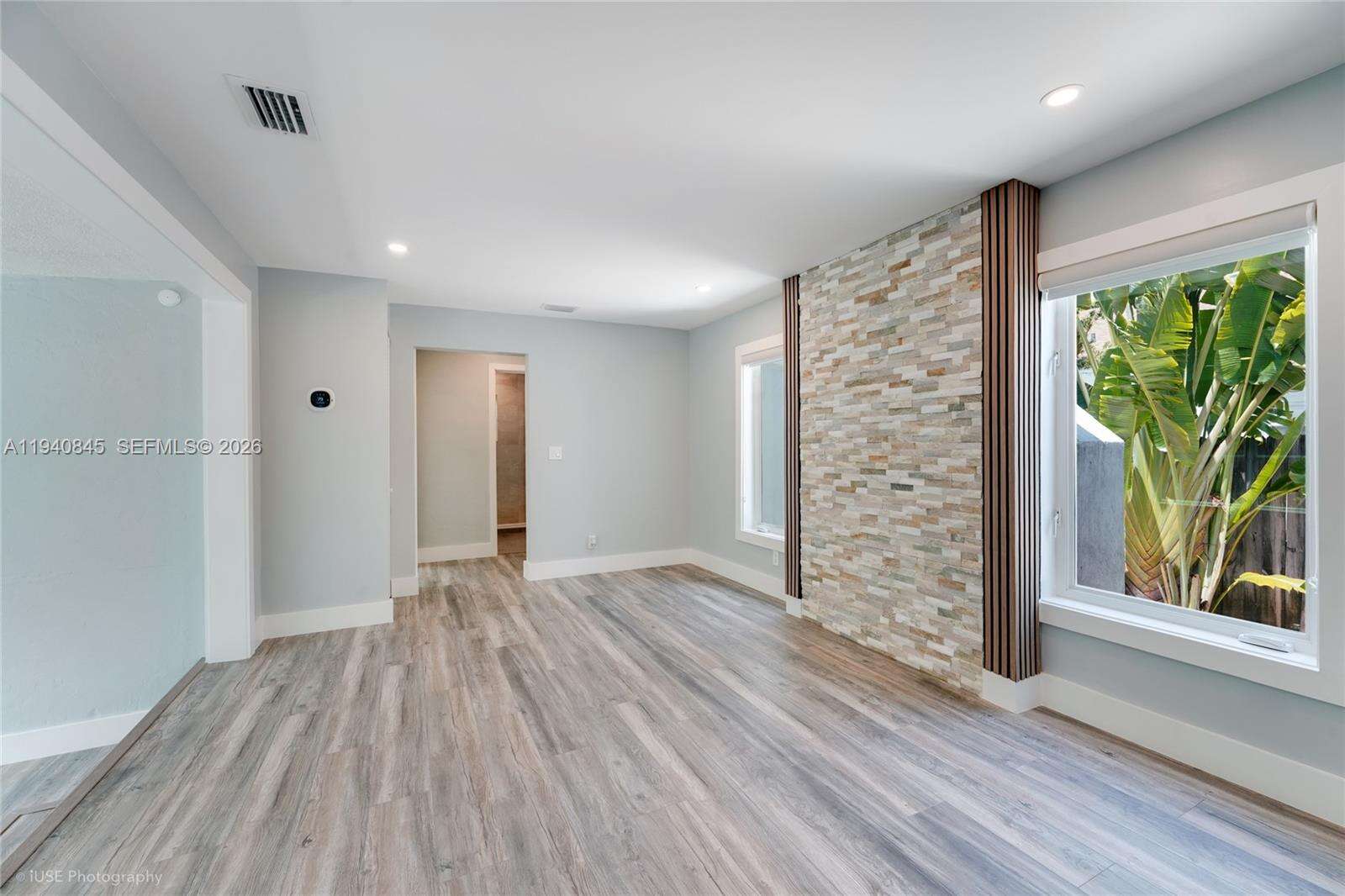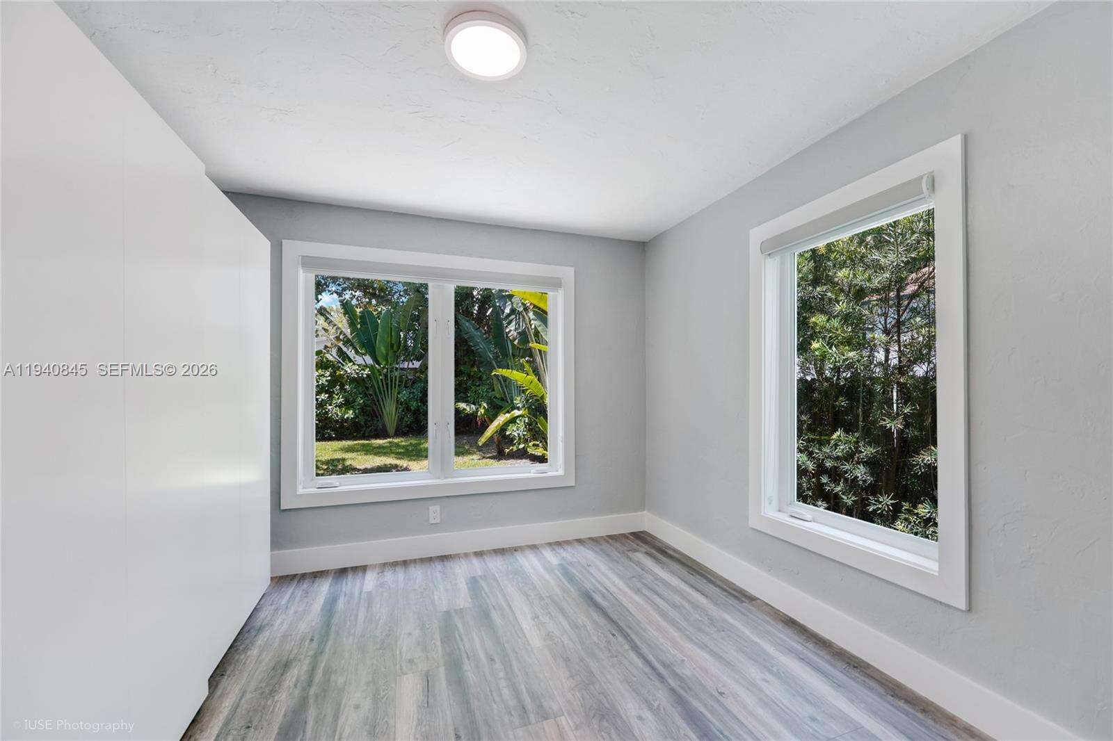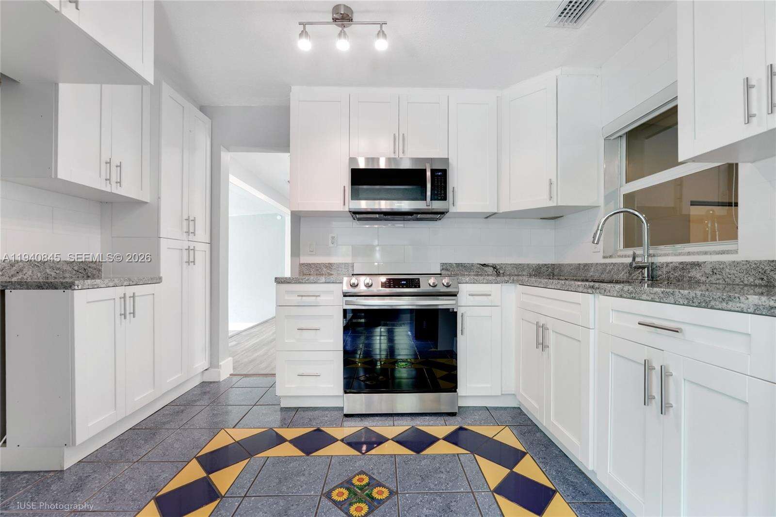 Charming Move-In ready Home with White Picket Fence in Trendy North Shorecrest! This meticulously fully RENOVATED residence is full of charm. Step inside and enjoy the seamless flow with a timeless, tranquil ambiance. It features impact windows/doors, new wood laminate floors, kitchen cabinets & appliances, and & electric gate for convenience. The layout includes a spacious living room, dining area, and kitchen with space for a breakfast nook. A flexible family room/den/home office can easily be converted back into a carport, depending on your needs. Situated on a Fully fenced corner lot, the lush landscaping offers privacy and a serene outdoor oasis complete with a huge avocado tree—ideal for gatherings, barbecues, pets, or simply unwinding in your own green space. With room for a pool!