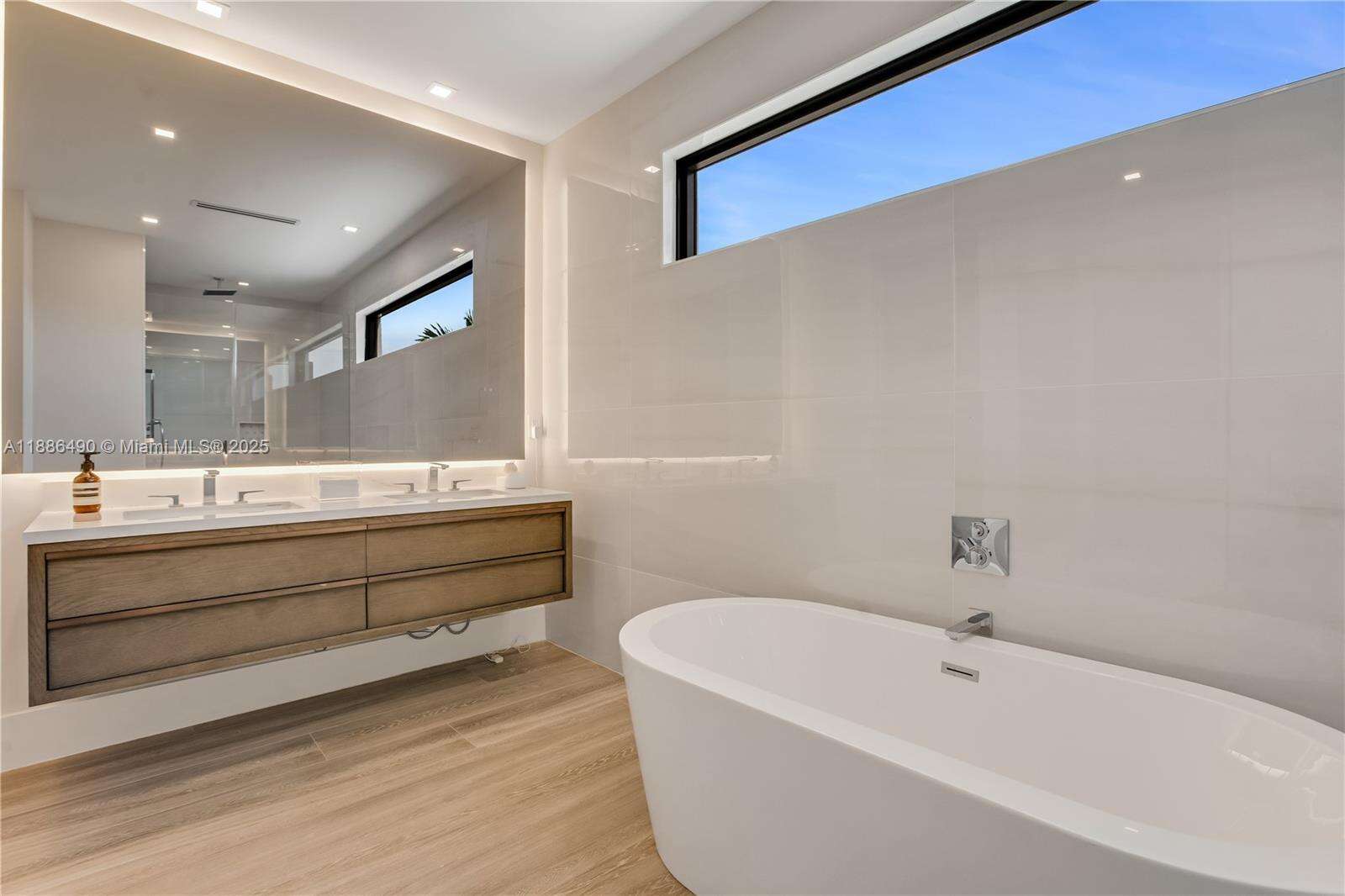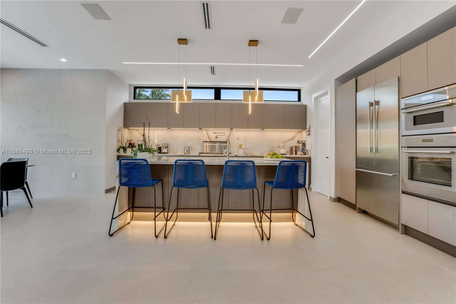 Welcome to your dream oasis! This beautiful 2024 construction 5-BR, 3.5-BA(room for 4th) home offers an exquisite blend of luxury and comfort across 3,108 SF. As you step inside, you'll be greeted by a grand foyer leading to spacious living areas adorned w/ hi-ceilings, tile flrs & recessed lighting. The chef's kitchen is a culinary enthusiast's delight, featuring custom cabinetry made by Vendetta Cuccina, premium counters, Thermador appliances, 5 burner gas stove & a wine cooler. Hurricane impact windows & doors fill the space w/ natural light, showcasing views of your private, fenced yard w/ pool. Each bedroom boasts custom closets & the primary suite includes an ensuite w/ separate shower & tub for ultimate relaxation. 2 sets of W/D's. Best new construction deal in Surfside!