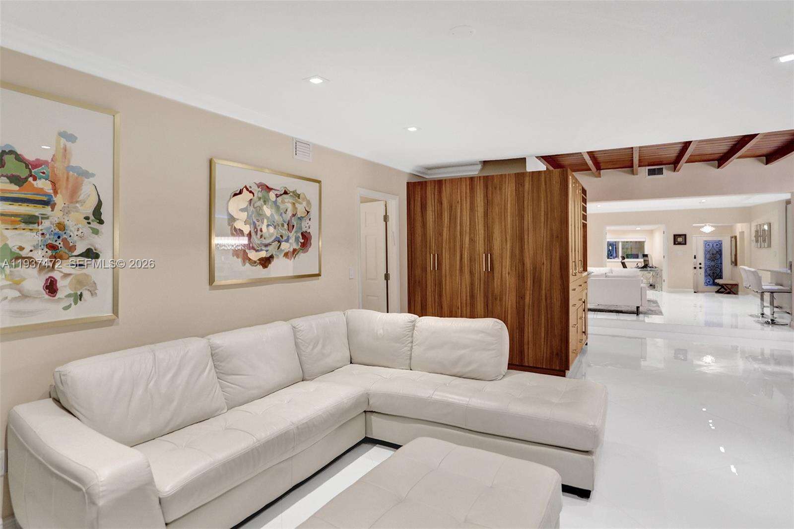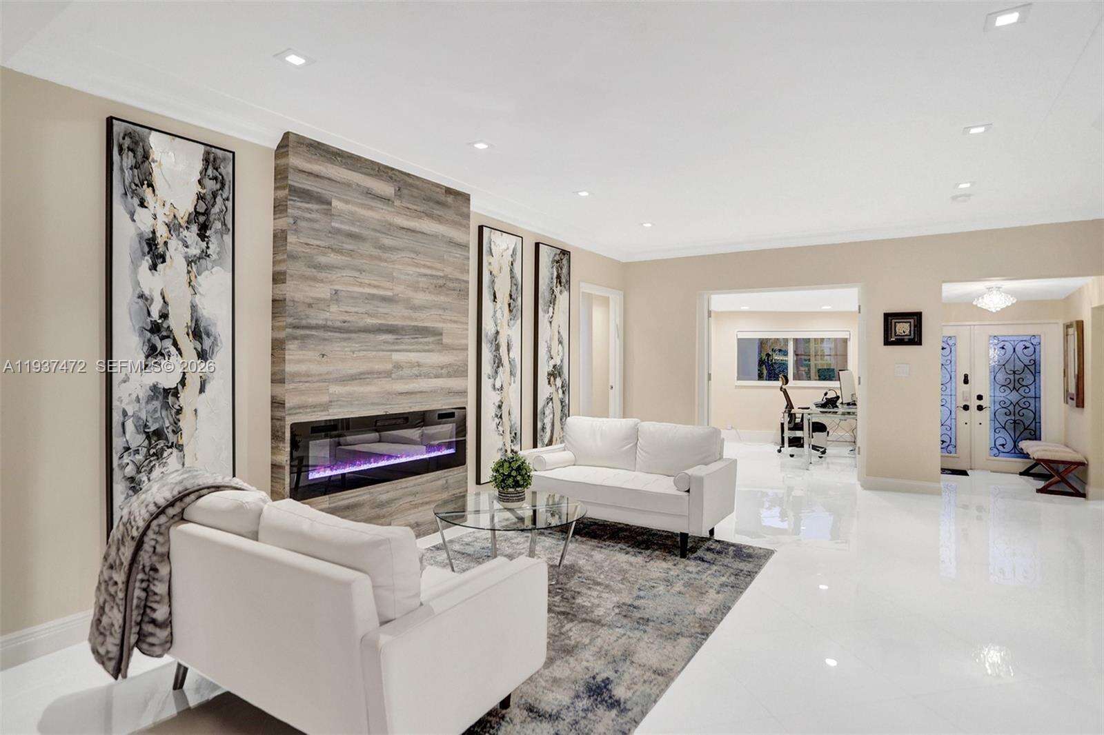 Mint-condition modern home in Surfside with a functional layout and strong natural light. Featuring 4 bedrooms plus an additional office room and 3.5 bathrooms. The kitchen is designed for convenience with two sinks and generous storage. Outdoor space is built for entertaining with a grill area, fireplace, and a large sitting/lounge area, along with a private swim spa pool. Comfort features include split and central HVAC systems. Offered with custom furniture. Located near a newly renovated city park, and conveniently near the beach, Surfside Community Center, shopping, dining, and multiple shuls, near the popular IndianCreek island, with easy access to Bal Harbor and Miami Beach. Move-in ready with no construction or renovations needed.