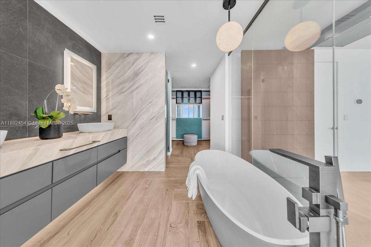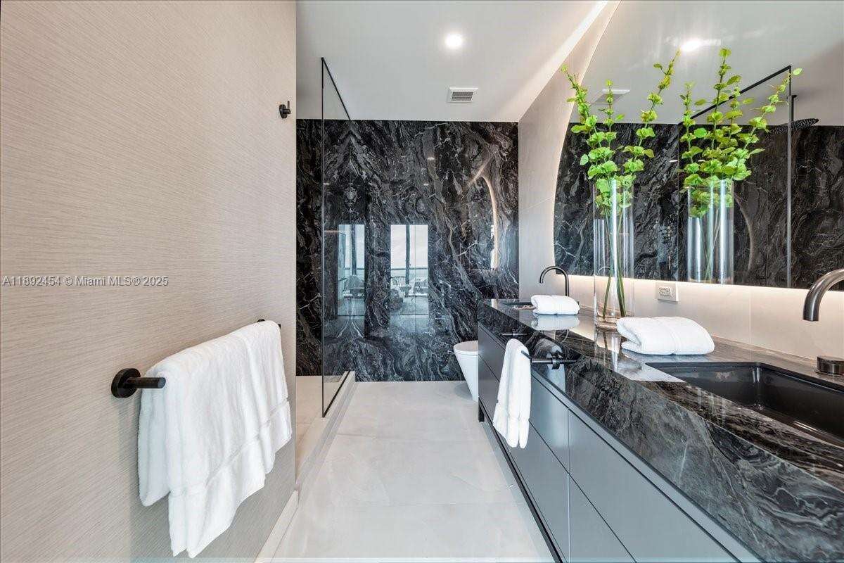 A TRUE MASTERPIECE! Fully Renovated 2 Story Penthouse with over $1.3M in upgrades! No detail overlooked showcasing bespoke finishes & dramatic 20 foot floor-to-ceiling windows framing direct east views of the ocean & Intracoastal waters. Features include custom imported Italian flooring, Miele & Thermador appliances, wine cooler/bar, marble accent wall, Lutron dimmable lighting, Sonos sound system, & designer walk-in closets. Glide up your sleek staircase to your impressive marble walls, smart-glass privacy tint, freestanding tub, steamer shower, & Toto luxury toilet. Marina Blue is conveniently located steps from Kaseya Miami Heat Stadium, Bayfront Park, Bayside, One World Center, Arts district, Brickell, & endless high end shopping & restaurants. Monthly HOA being reduced to $2775 in 2026! Absolutely unheard of!