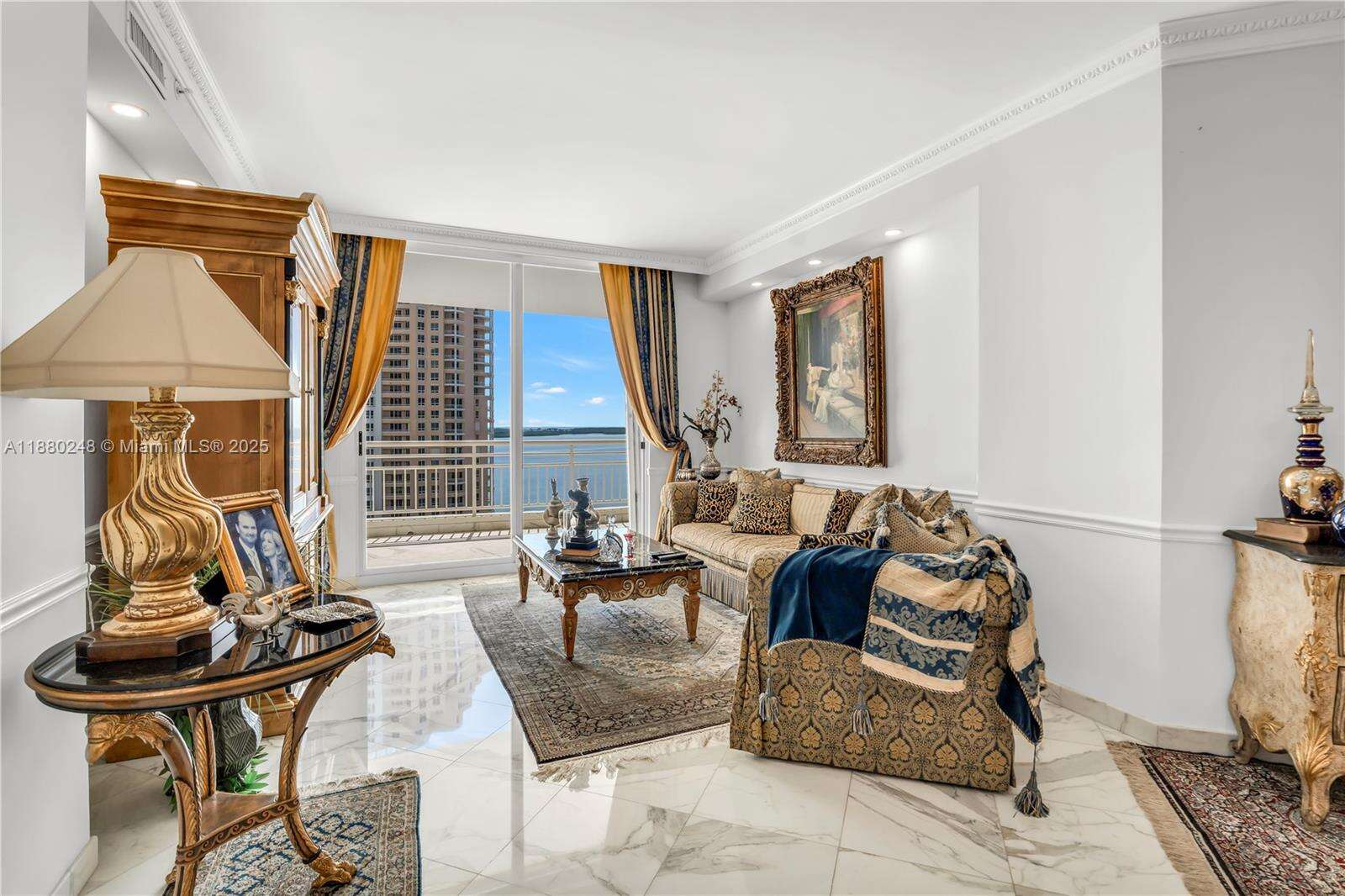 Great bay views, 3 bedrooms, 2.5 baths (1,650 sq ft), impeccable condition, sold partly furnished. Marble floors throughout, marble baths, built-in closets. Full service building, recently remodeled to perfection. Assessments to be paid in full by owner. 24 hour secured island & building featuring guard at gate, concierge service, management in house, pool w/bar-b-q area, jacuzzi, gym, sauna, business room, party room, racquet ball & squash courts. 1 assigned parking & valet parking for guests. Brickell Key offers a recreational park for children, a scenic 1 mile jogging path around the island, gourmet market with daily specials, restaurants and more. Exclusive Island, future home of the Mandarin Oriental Residences, making this one of Miami's most exclusive waterfront communities.