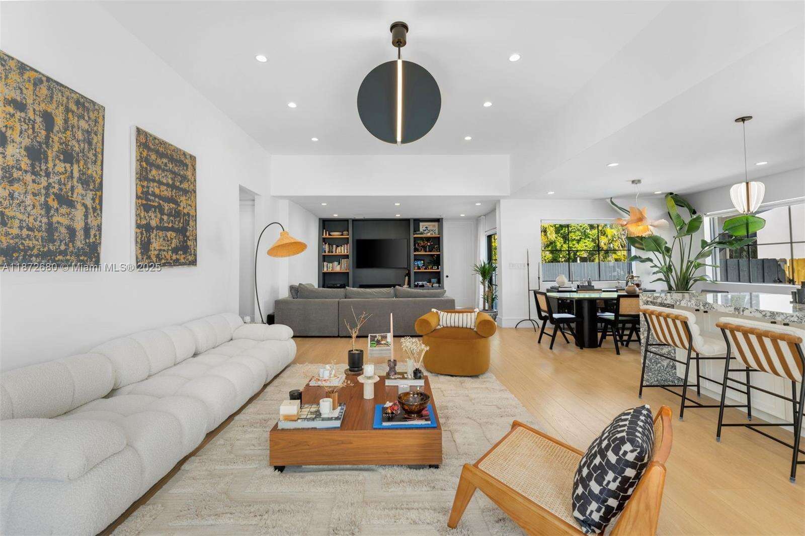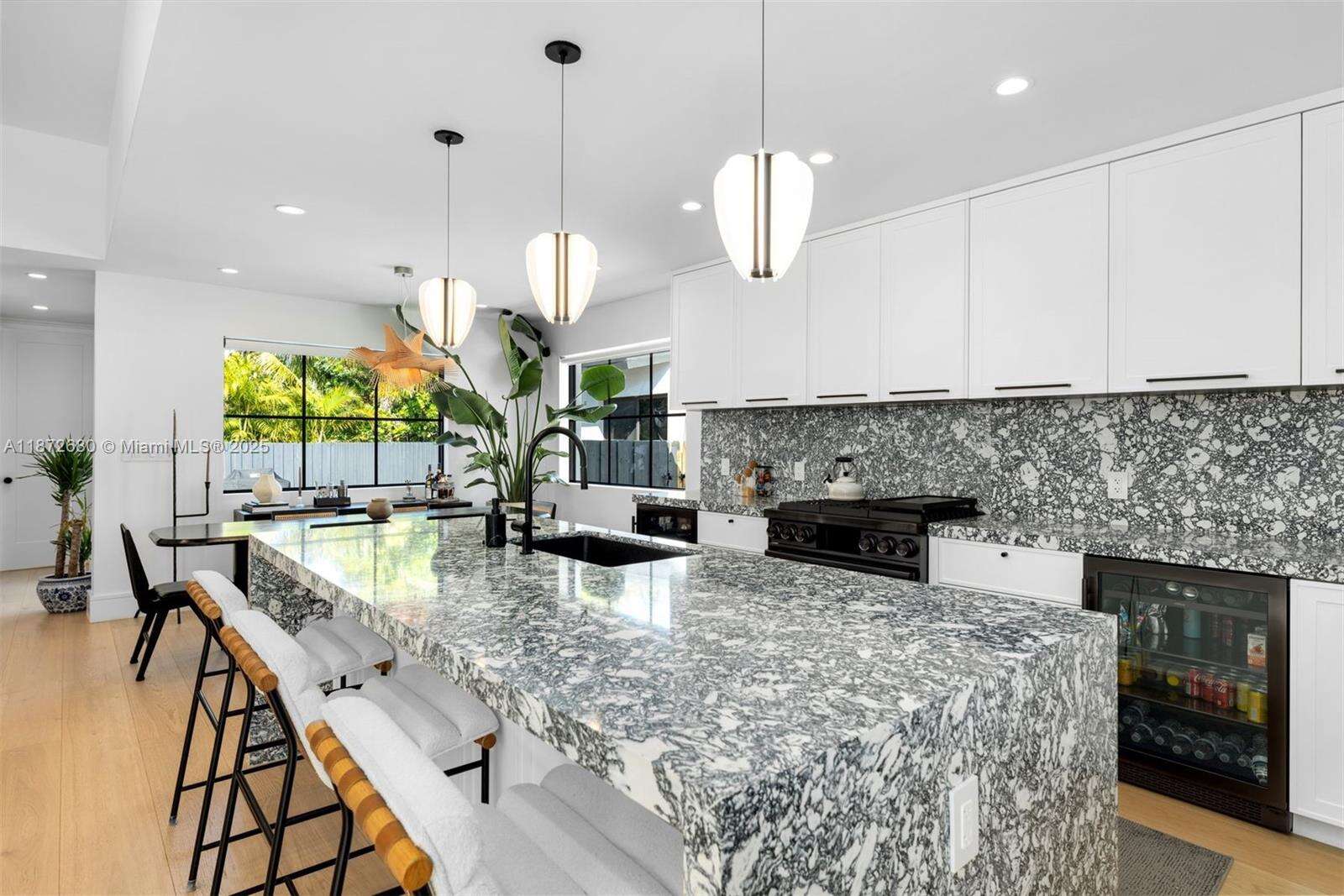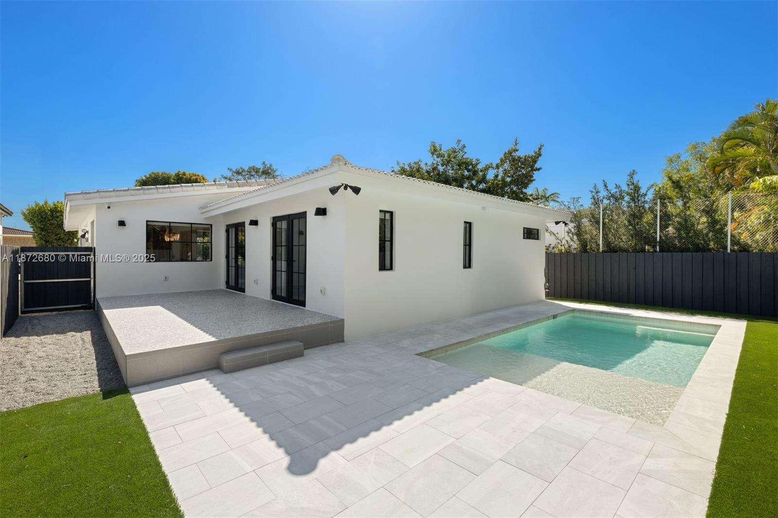Beautifully rebuilt Mid-Century Modern home in Surfside. The home has 4 bedrooms, 3 bathrooms, an outdoor dining area, open floor plan, tons of natural light and a new pool that both heats and cools. The open kitchen is perfect for entertaining with a large center island, custom cabinetry, quartz countertops, a 36" gas Dacor range, wine fridge and beverage center. The home has wide plank wood floors, a walk-in closet in the primary bedroom and cat 5 internet throughout with 4 cameras hardwired around the property. Thoughtfully landscaped and hardscaped, this home allows you to enjoy the best of Surfside indoor and outdoor living. Walking distance to the beach, shops and restaurants and area playgrounds.