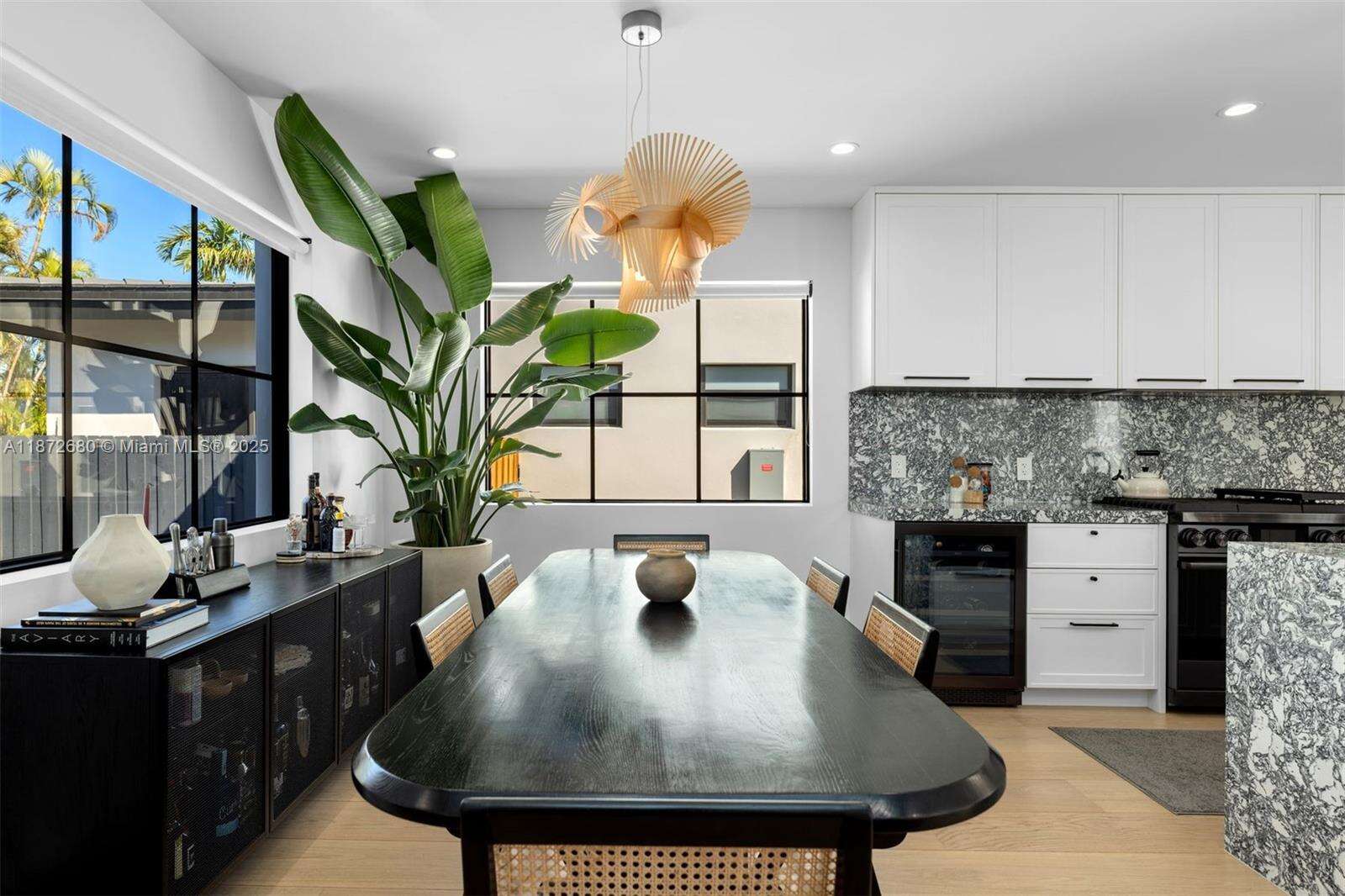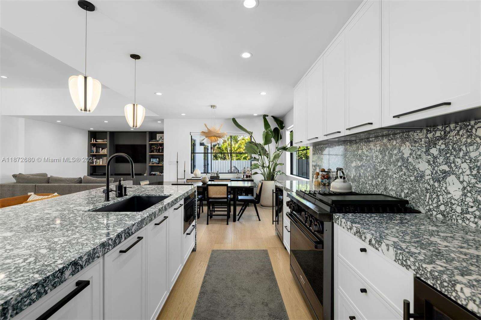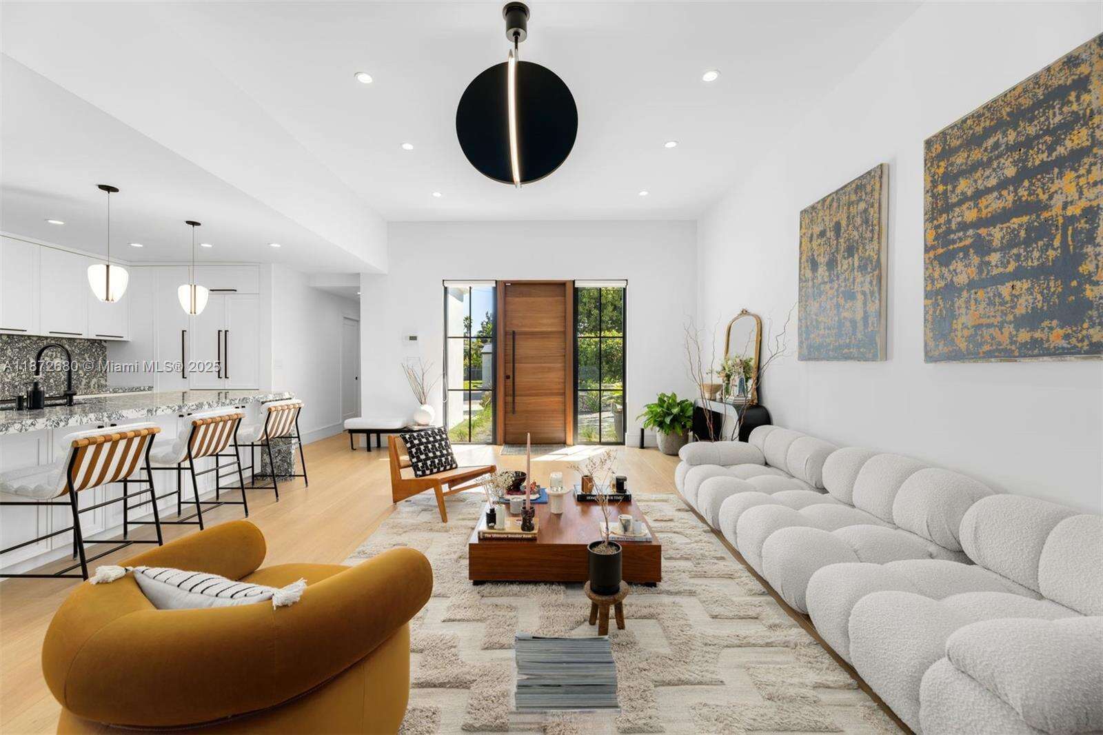Beautifully rebuilt Mid-Century Modern home in Surfside. The home has 4 bedrooms, 3 bathrooms, an outdoor dining area, open floor plan, tons of natural light and a new pool that both heats and cools. The open kitchen is perfect for entertaining with a large center island, custom cabinetry, quartz countertops, a 36" gas Dacor range, wine fridge and beverage center. The home has wide plank wood floors, a walk-in closet in the primary bedroom and cat 5 internet throughout with 4 cameras hardwired around the property. Thoughtfully landscaped and hardscaped, this home allows you to enjoy the best of Surfside indoor and outdoor living. Walking distance to the beach, shops and restaurants and area playgrounds.