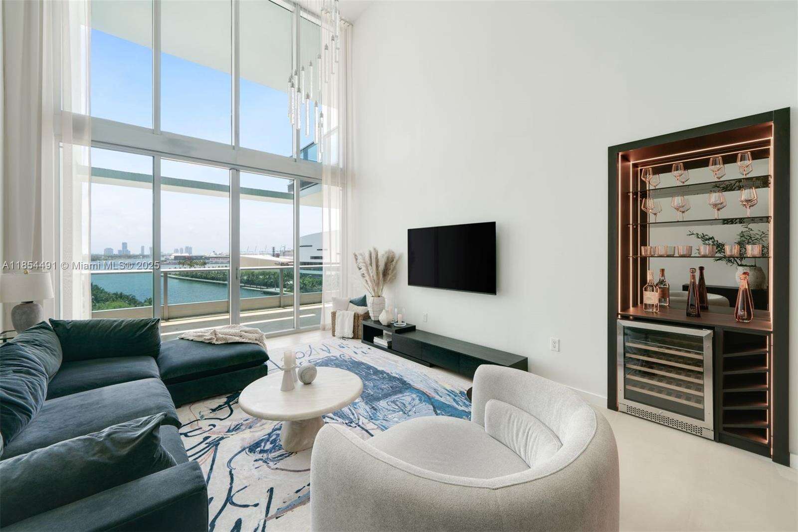 Captivating and Rare Sky-Home in the Heart of Miami! Indulge in the exclusivity of this light-filled two-story condo that present the ultimate in luxury living. This one of a kind unit boasts a distinctive floorpan with over 1,600 sqft of living space as well as 350qft of terraces over two stories. With soaring 20ft ceilings and two balconies, this residence bathes in an abundance of natural light, creating an inviting and airy atmosphere. The layout comprises 3 bedrooms, a den, and 3 bathrooms, providing ample space for comfortable living. Enjoy unobstructed water and park views in one of Miami's most iconic buildings 900 Biscayne Bay. Available to show starting August 20th.