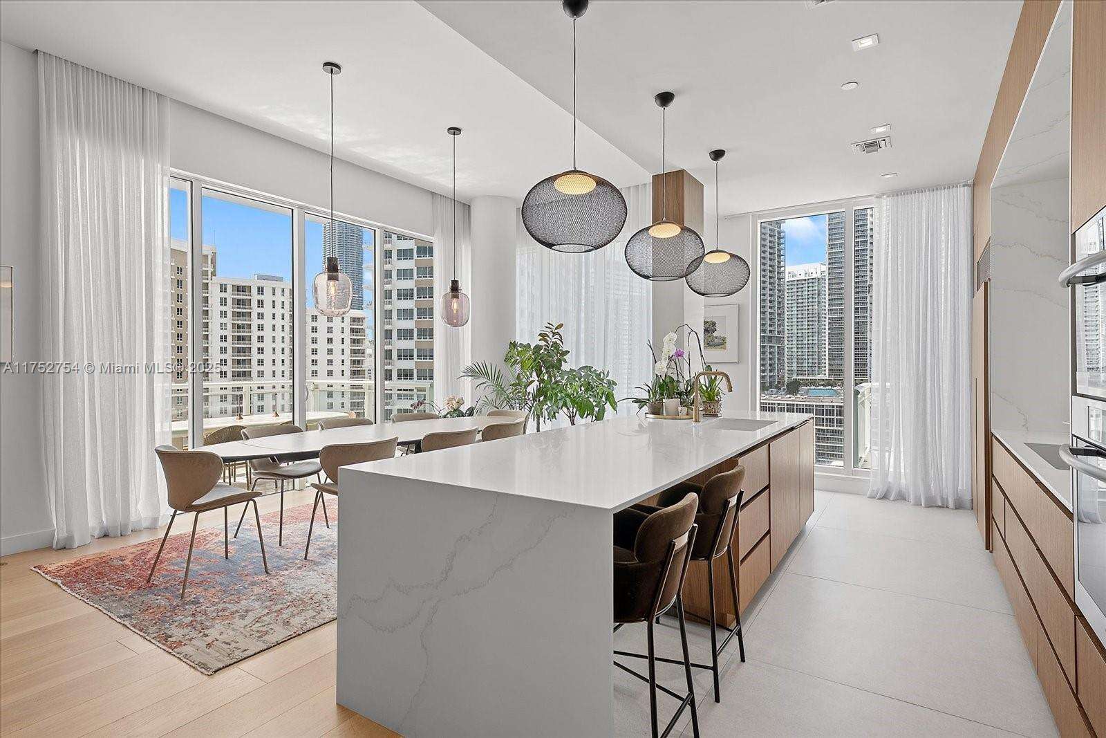 This beautifully renovated 3-bedroom + den, 4.5-bath condo on exclusive Brickell Key offers stunning water views from nearly every room. Situated in a gated island community with 24-hour security, the home features soaring ceilings, sleek finishes, and expansive floor-to-ceiling windows that flood the space with natural light. Enjoy four spacious terraces with panoramic views of the serene waterfront, lush greenery, and iconic Miami skyline. The gourmet kitchen, with top-tier appliances and custom cabinetry, is perfect for entertaining. The master suite includes a private terrace, walk-in closet, and a spa-like bath with soaking tub, and glass-enclosed shower. Additional amenities include tennis courts, a resort like pool, basketball & squash court, and a fitness center.
