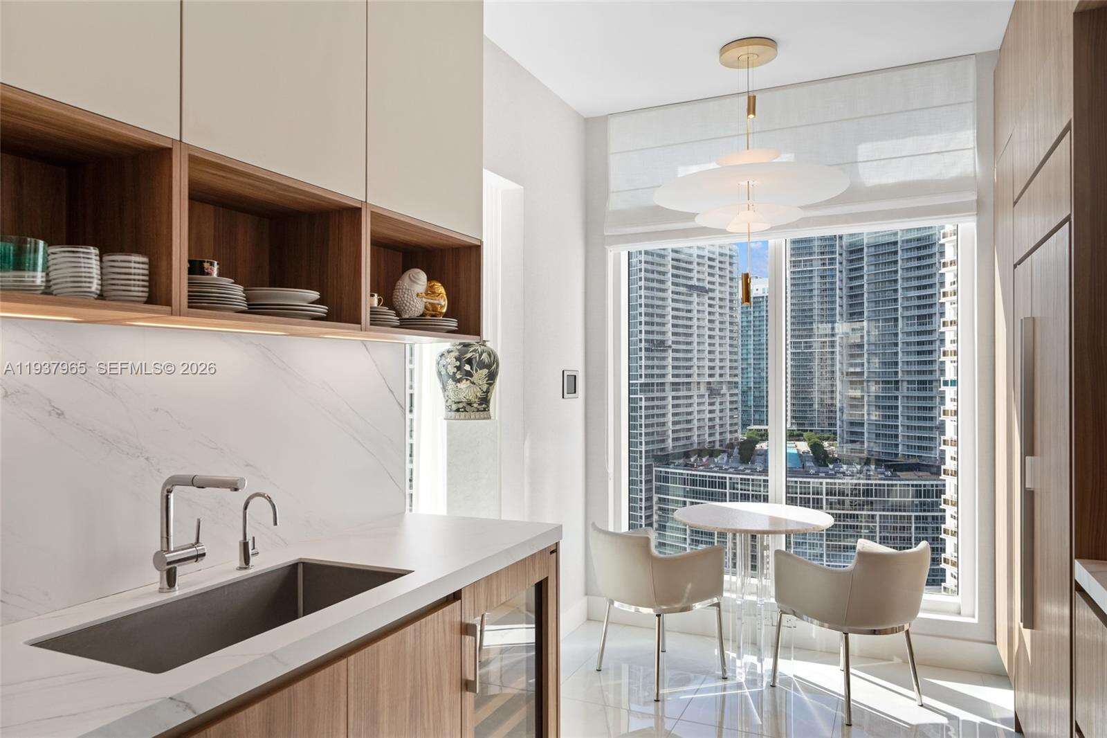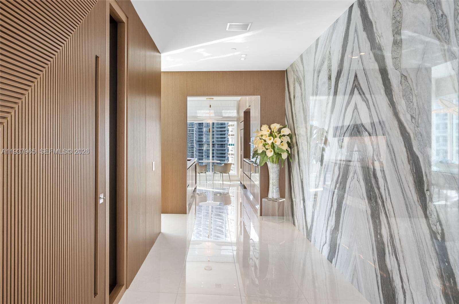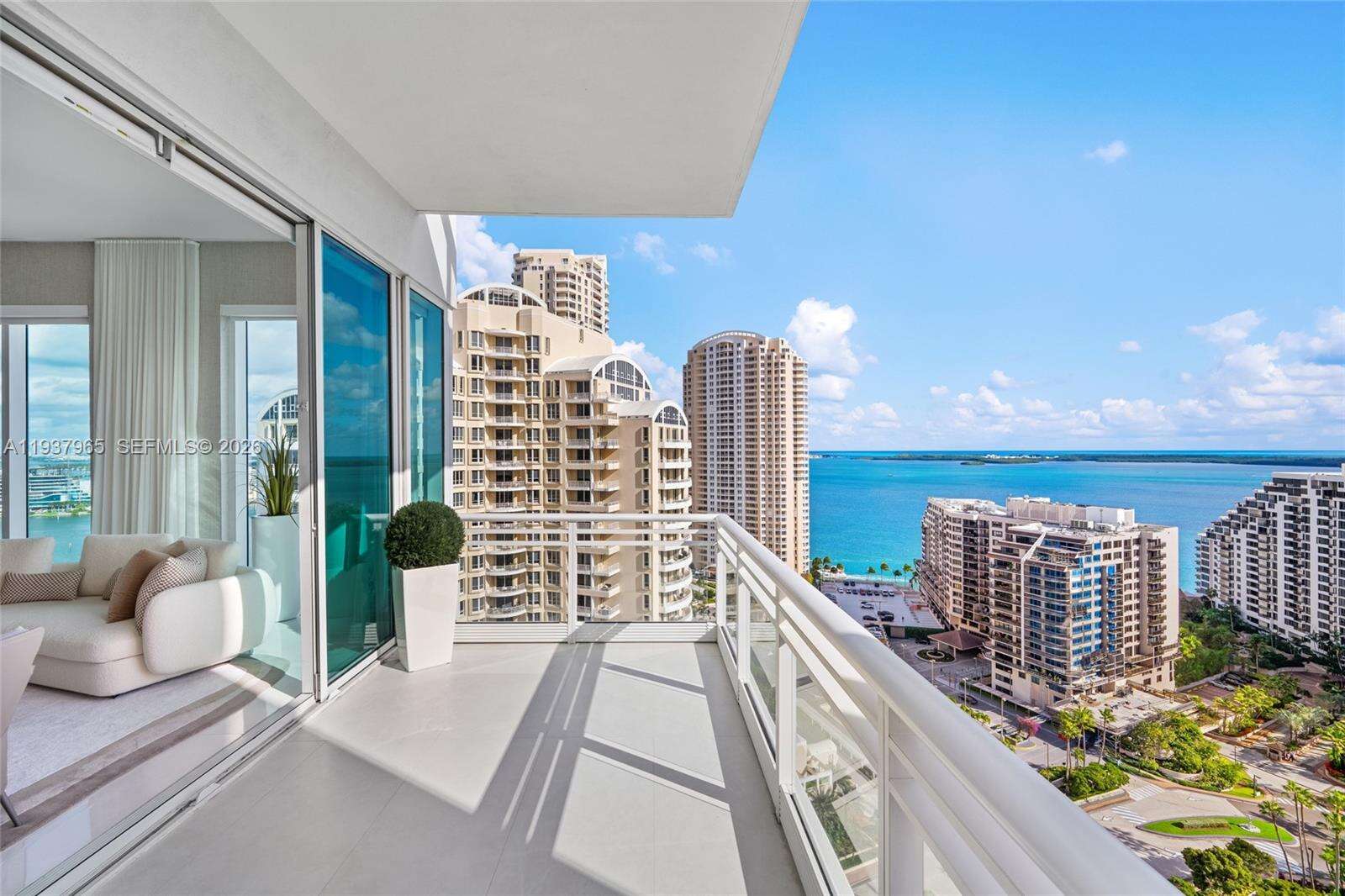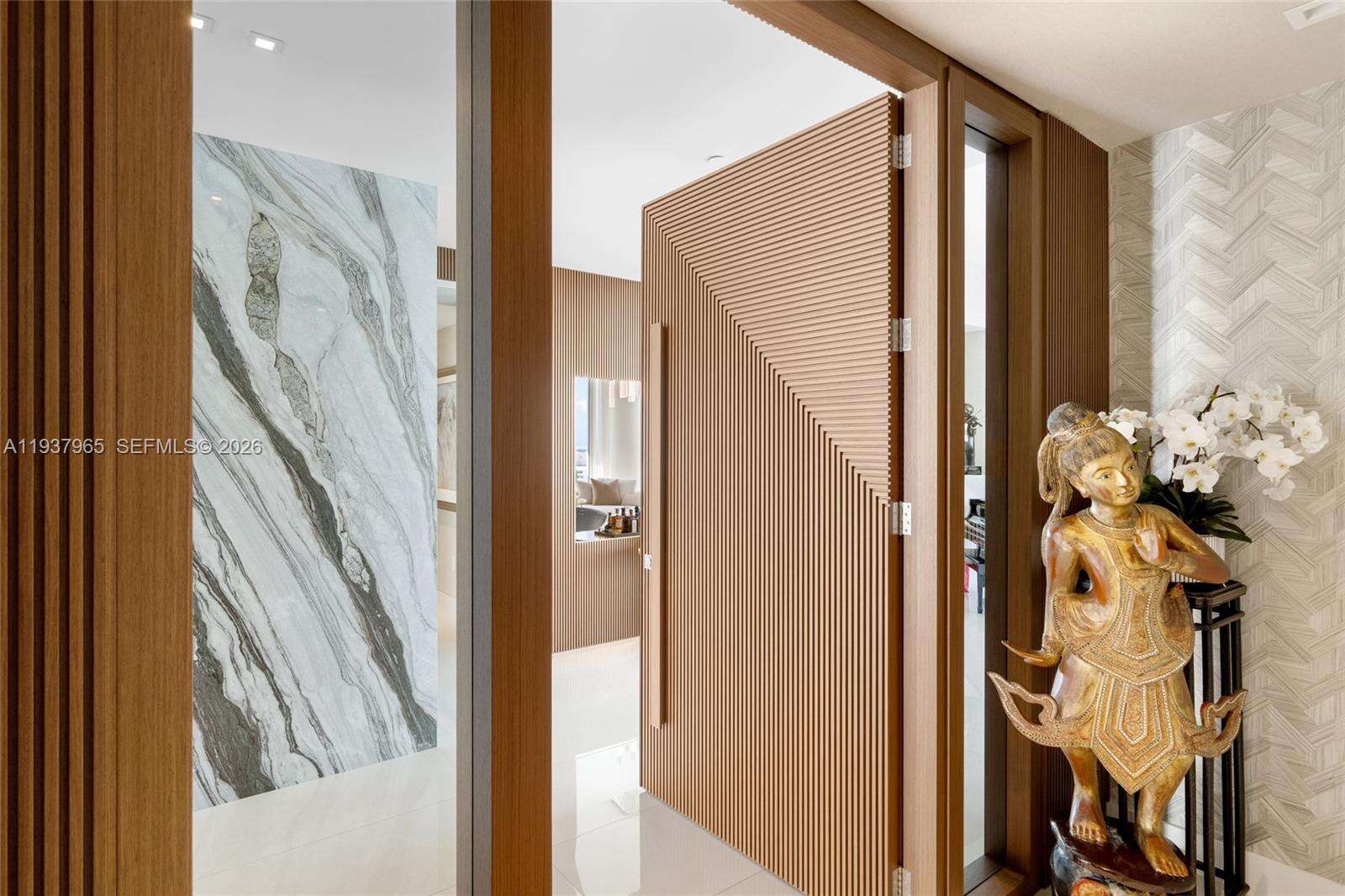 Discover refined Brickell Key living in this exceptional corner residence at Asia, one of the island’s most exclusive boutique buildings. This spectacular home offers breathtaking 180-degree panoramic views of the ocean, Biscayne Bay, and Miami’s iconic skyline. A private elevator opens into a grand interior defined by soaring 12-foot ceilings, expansive glass walls, and marble surfaces paired with bespoke millwork—an elevated level of finish rarely found in condominium living. Timeless materials blend seamlessly with modern sophistication, creating an atmosphere of quiet luxury. Four expansive terraces extend the living experience outdoors, offering stunning sunrise and sunset views with uninterrupted water and city vistas in every direction. The gourmet kitchen features stone countertops, custom cabinetry, a wine cooler, built-in espresso machine, Miele ovens, Sub-Zero refrigerator, integrated microwave, and ceramic cooktop—ideal for entertaining and daily living. The residence includes two assigned parking spaces and a private storage unit. Resort-style amenities include 24/7 concierge and valet, tennis courts, swimming and resistance pools, Jacuzzi, state-of-the-art fitness center, and resident lounge. A rare opportunity delivering prestige, privacy, and panoramic beauty at the highest level of Brickell Key living.