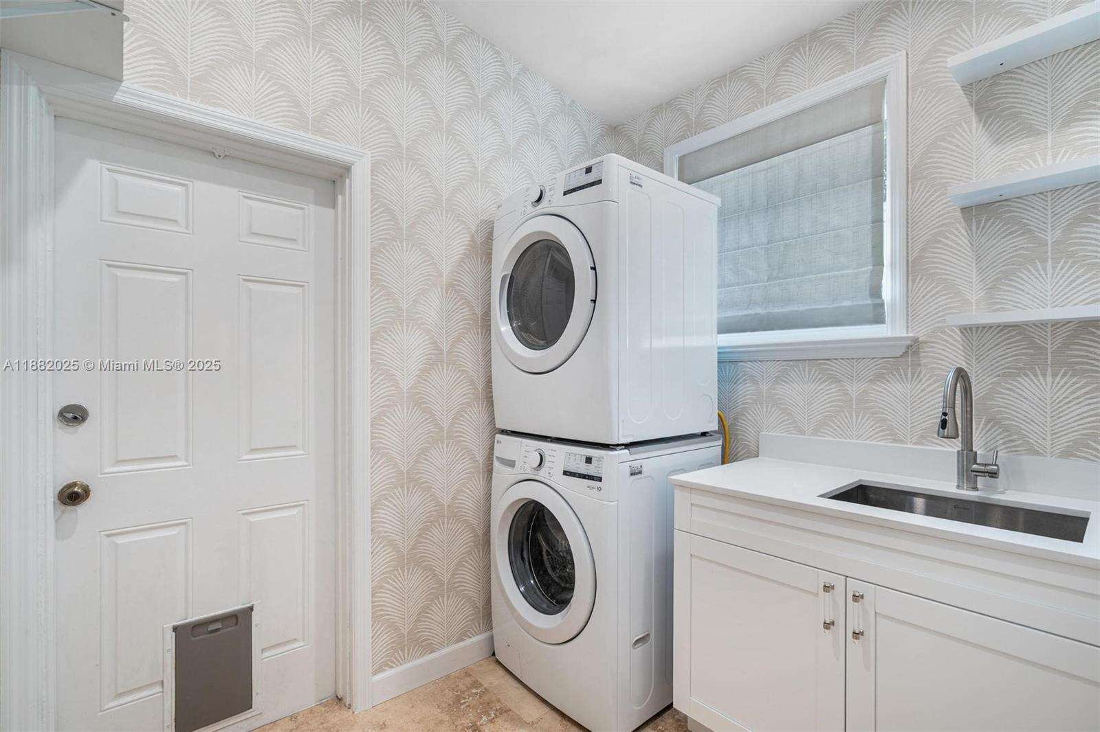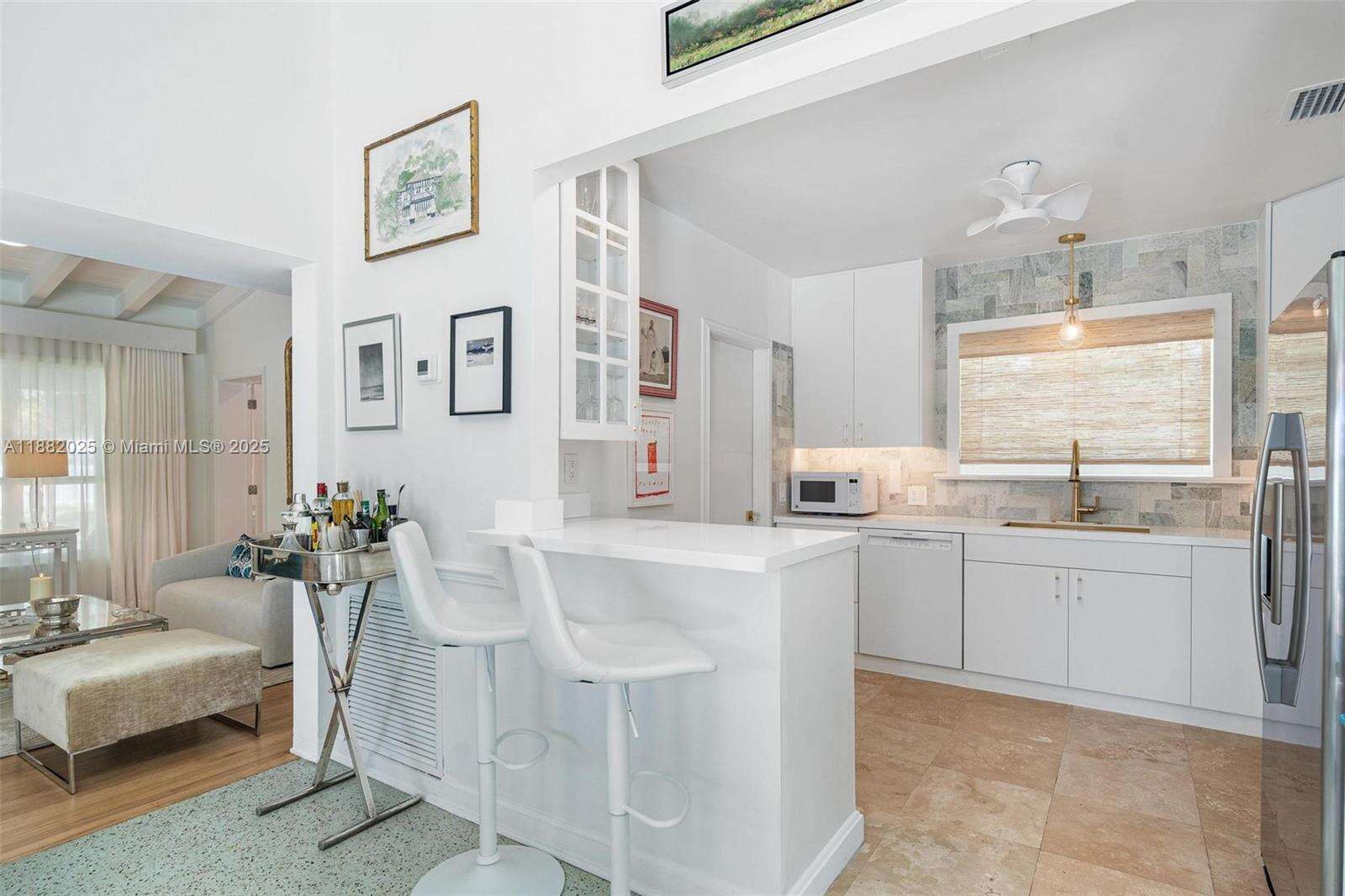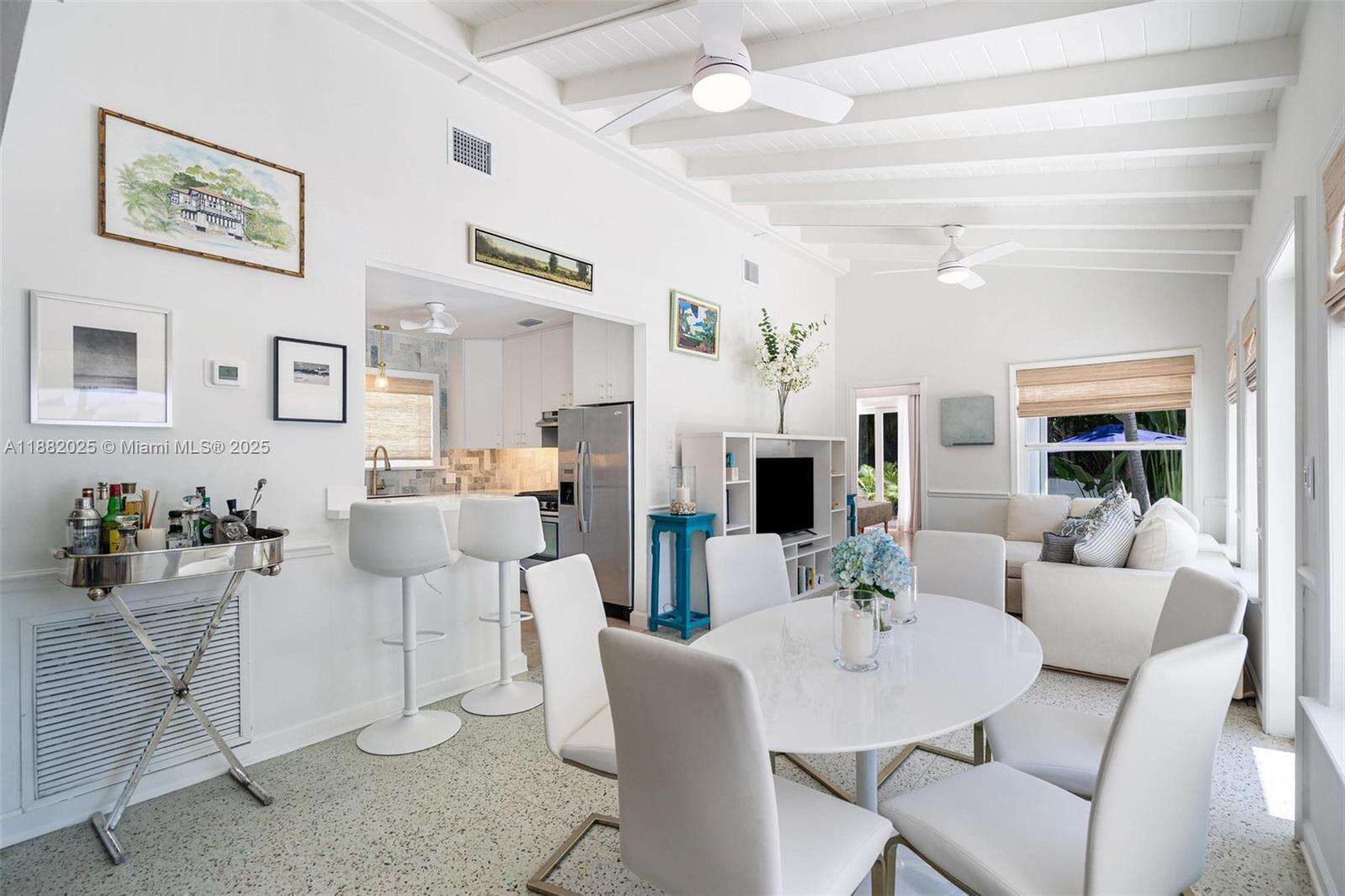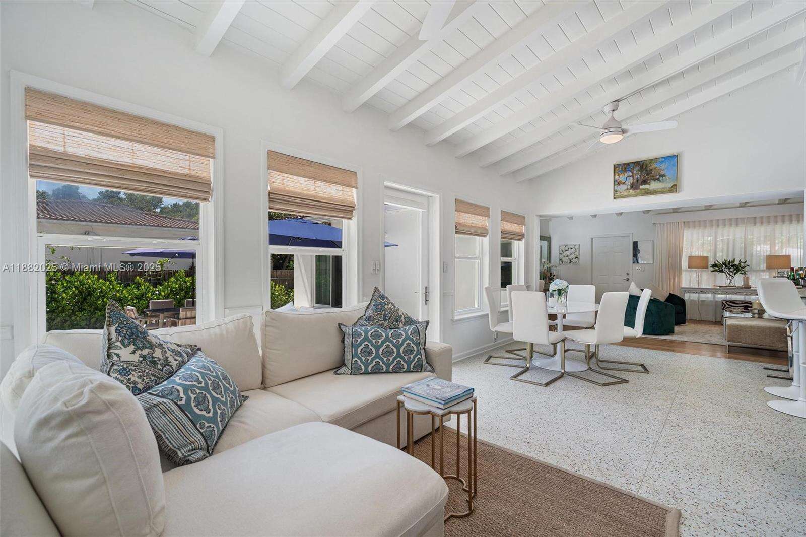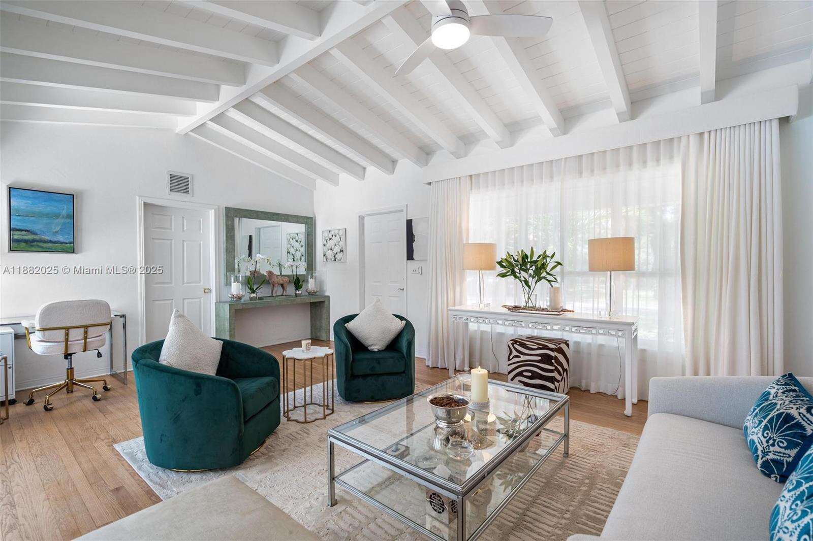Palm Beach style Meets East Miami Shores! Experience refined living in this fully renovated 3BR/3BA home on a quiet cul-de-sac in the exclusive East Miami Shores, just steps from the bay. Modern sophistication meets timeless style with newly refinished hardwood floors, polished terrazzo, custom California Closets, and a state-of-the-art kitchen. Two bathrooms were completely redesigned, plus a new guest suite with ensuite and walk-in closet adds flexibility. Enjoy a laundry room with storage, custom window treatments, modernized façade, new landscaping, full irrigation, and second driveway. The lush backyard, surrounded by palm trees, features a 15’x30’ heated pool with spa and sundeck, connected to the home via three sets of French doors for true indoor-outdoor living. Easy to show!