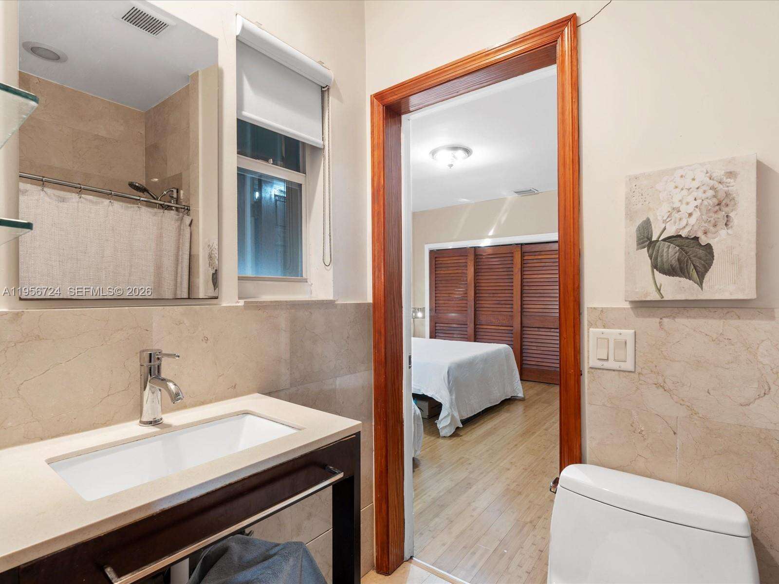 Newer tile roof, new A/C, & gas water heater provide peace of mind and strong structural value. Located on one of the best blocks in the oceanfront Town of Surfside, just steps to the beach, this updated family home blends modern comfort with classic charm. Features 3 bedrooms, 3 baths, and a den, and a 1-car garage with easy 5-bedroom potential by enclosing the den and converting the garage. Highlights include updated electrical, recessed lighting, hardwood floors, custom cedar-lined closets, updated appliances (2020), and hurricane shutters. Soaring ceilings and elegant molding enhance timeless style. Kitchen with granite countertops and stainless steel appliances. Enjoy community beach club & pool, tennis, pickleball, playgrounds, Bal Harbour Shops, Four Seasons Surf Club, shopping, houses of worship, A-rated Bay Harbor schools. Rare Surfside opportunity steps to the beach & town center.