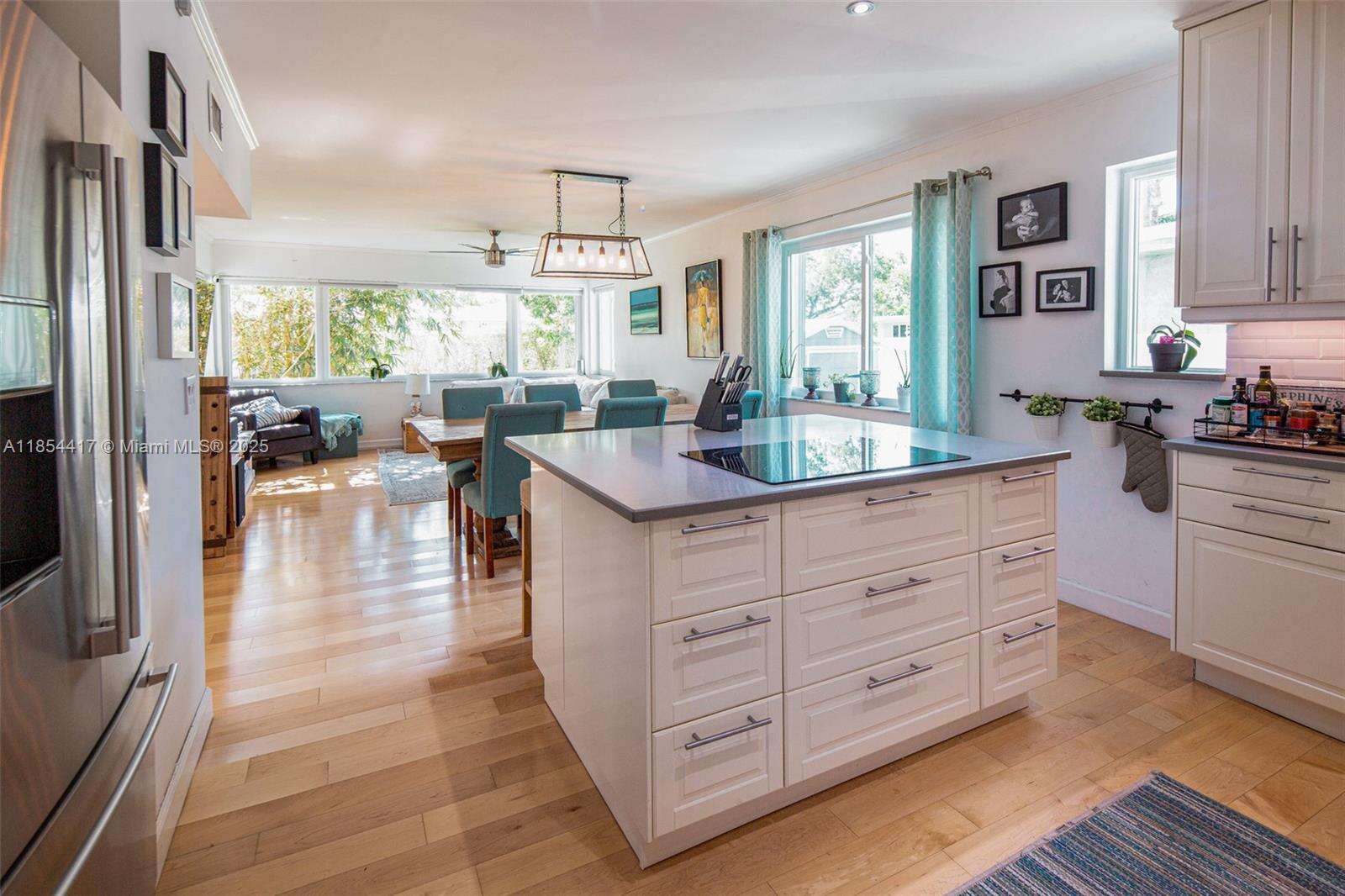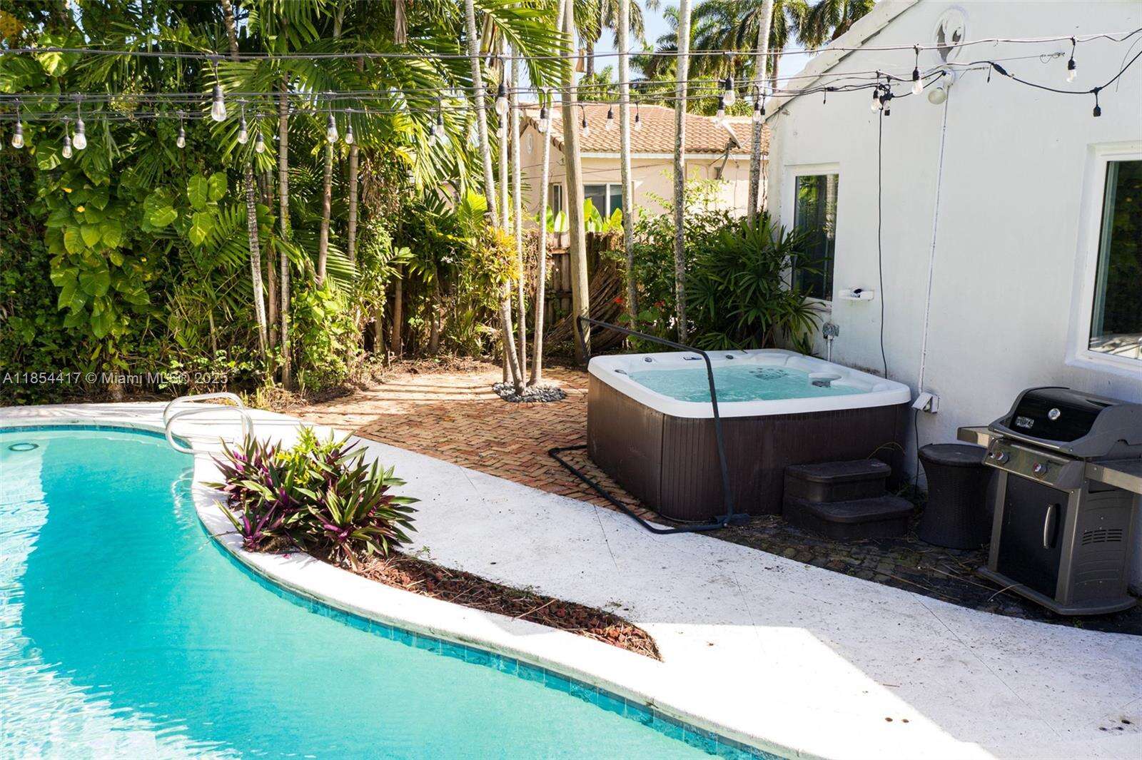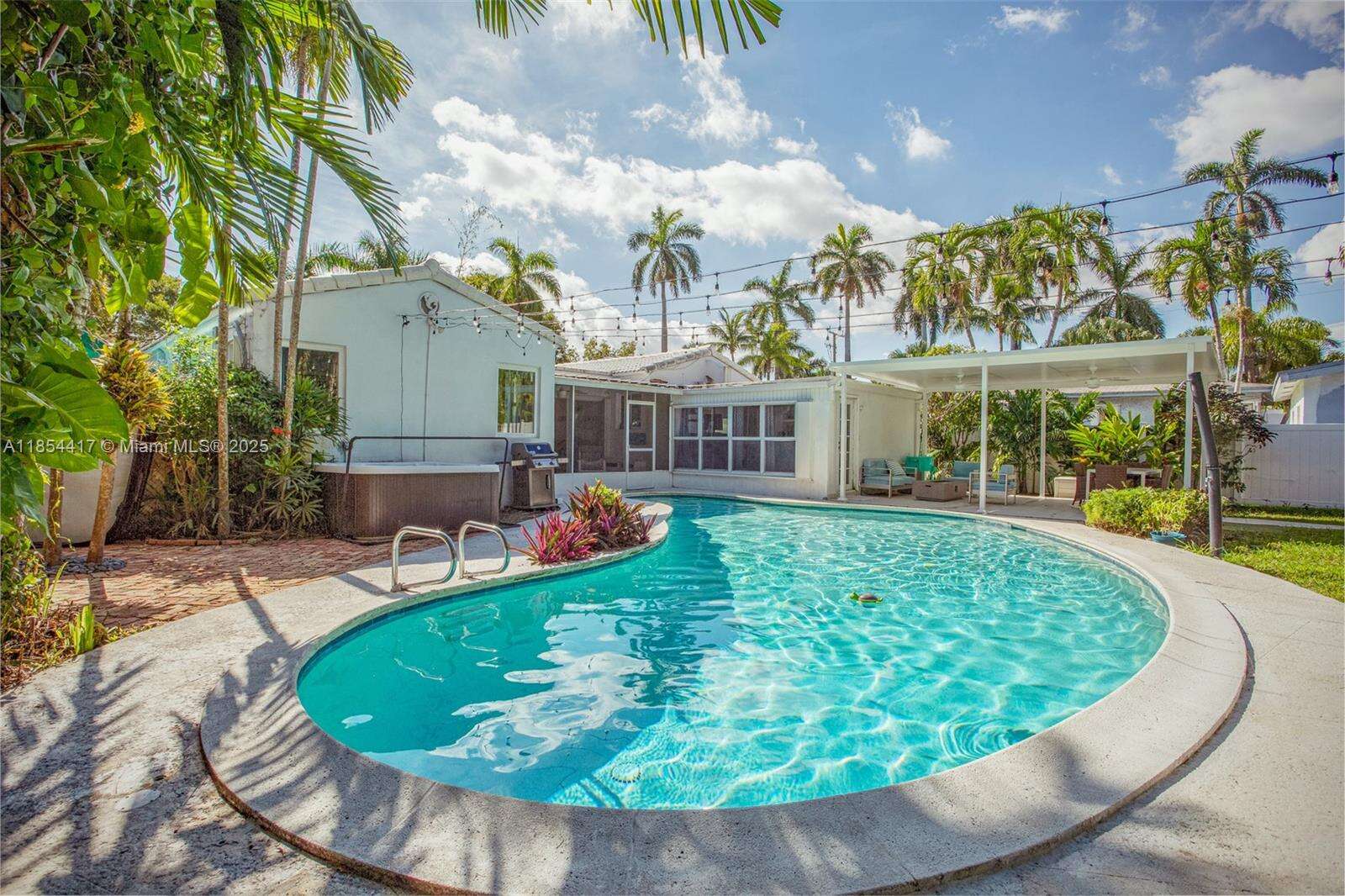 Short distance to the beach! This beautifully renovated Hollywood Lakes home offers a tropical oasis with a heated saltwater pool, spa, and roofed patio for year-round enjoyment. Inside, you’ll find new premium vinyl floors (2025), tiled bathrooms, a modern kitchen with quartz countertops and stainless steel appliances, fully updated electric plus LED lighting and a tankless water heater. Major upgrades include a 15.54 kW solar system (new), complete pool renovation (2021), PVC sewer piping (2022), flat roof (2023), updated tile roof with solar, impact windows and hurricane shutters, and dual AC units (2024 & 2022). Complete pool renovation in 2021. Truly move-in ready with top-to-bottom updates. Home may be sold furnished or unfurnished.