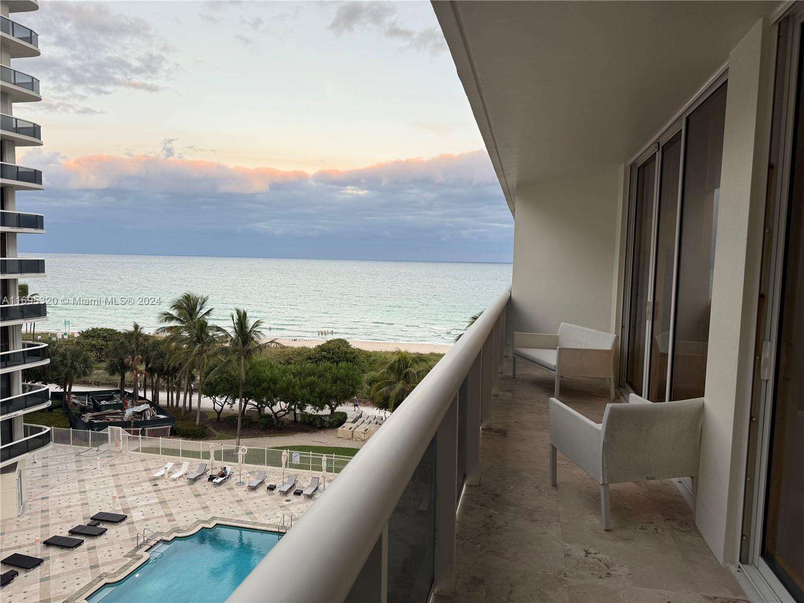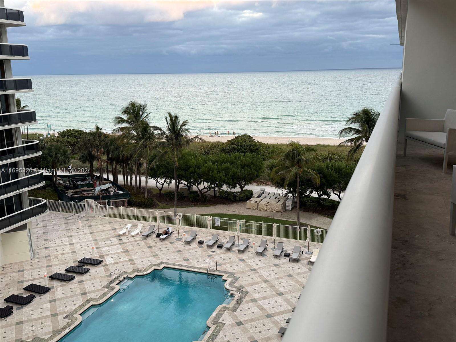 Spacious and bright 2 bedroom, 2.5 bathroom apartment with stunning Ocean & Pool views. Furnished with potential for personal touches. Semi-private elevator foyer; 24-hour security & valet; pool & beach service; gym, and more. Walk across the street to Bal Harbour Shoppes.