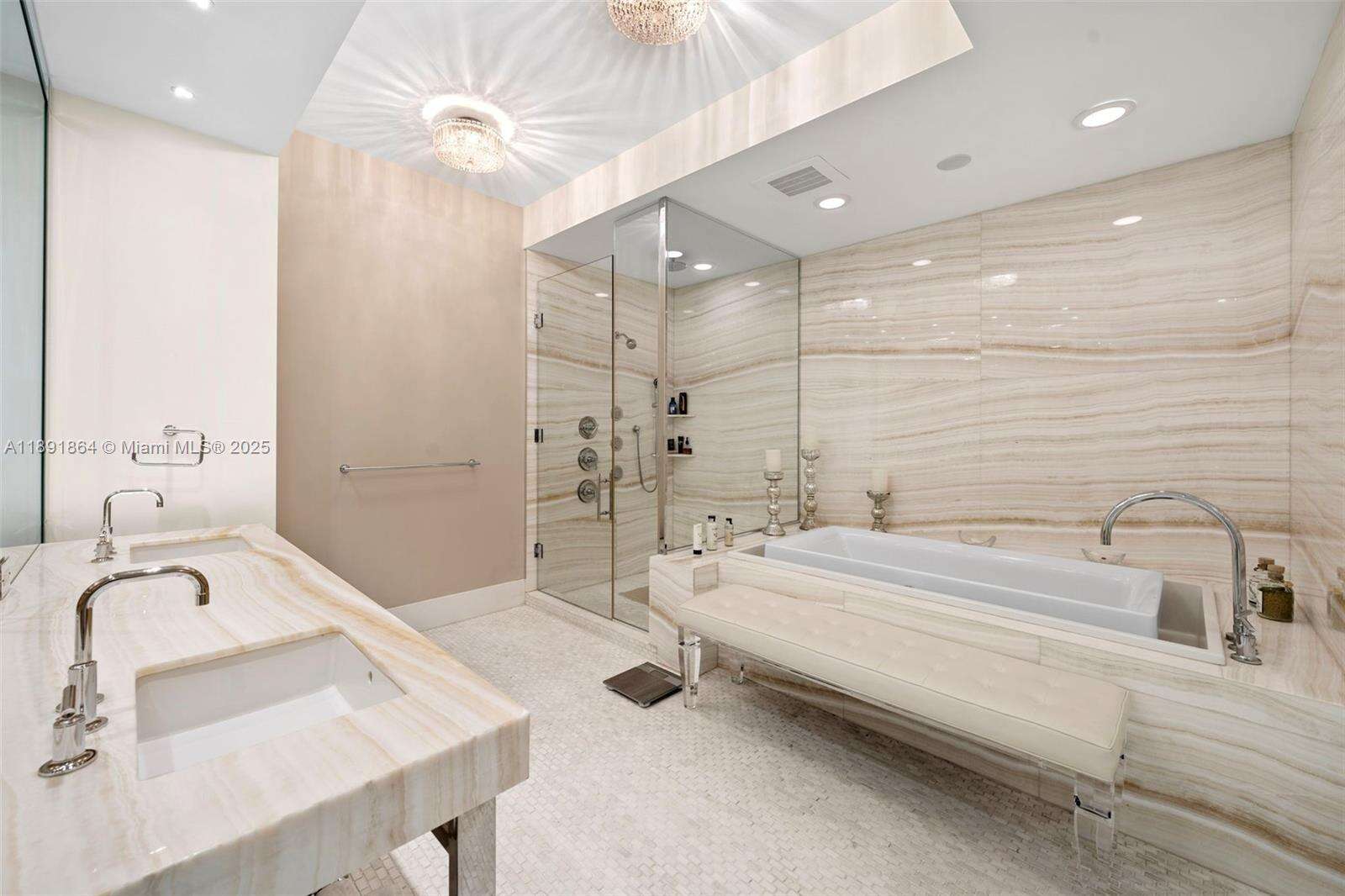 Enjoy Sunrise & Sunset at This Designer-Decorated Flow-Through Residence at St. Regis Bal Harbour elegant 3-bed, 3.5-bath residence with 3,128 SF on the 14th floor of the coveted Tower North. Move-in ready with custom designer finishes, marble accents, and a split layout ideal for privacy and entertaining. The east terrace showcases direct ocean views from the primary and second bedrooms, while the west terrace off the third bedroom, kitchen, and family room offers stunning sunsets and the Miami skyline. St. Regis offers five-star amenities: concierge, private beach service, full-service spa, three pools, and fine dining. Experience refined Bal Harbour living.