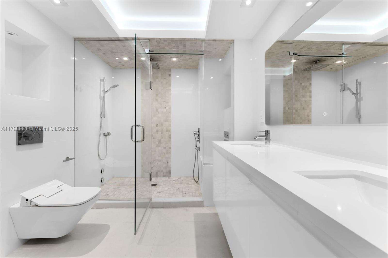 Enjoy direct beach access and ocean views from EVERY ROOM in this 2-bedroom, 2.5-bath residence at the Balmoral Bal Harbour. Across from Bal Harbour Shops, this updated condo offers a spacious, light-filled layout with marble floors, high end finishes and an open living, kitchen, and dining area. The kitchen features a large island, premium appliances, and ample storage, with dining space alongside, ideal for entertaining or working from home. The primary suite includes a walk-in closet and an en-suite bath with double vanities and a glass-enclosed shower. The guest bedroom offers a generous closet, and a full bath across the hall with a tub and shower. Additional features include an in-unit washer/dryer and a private balcony with a clear view of the ocean, just moments from the beach.