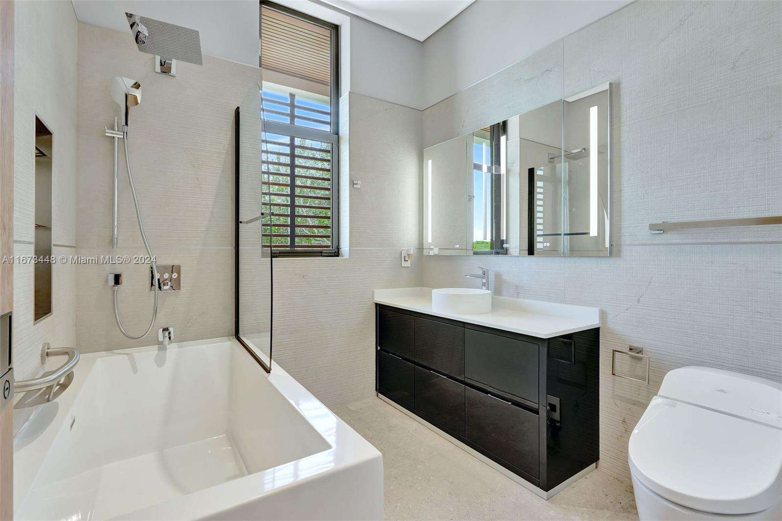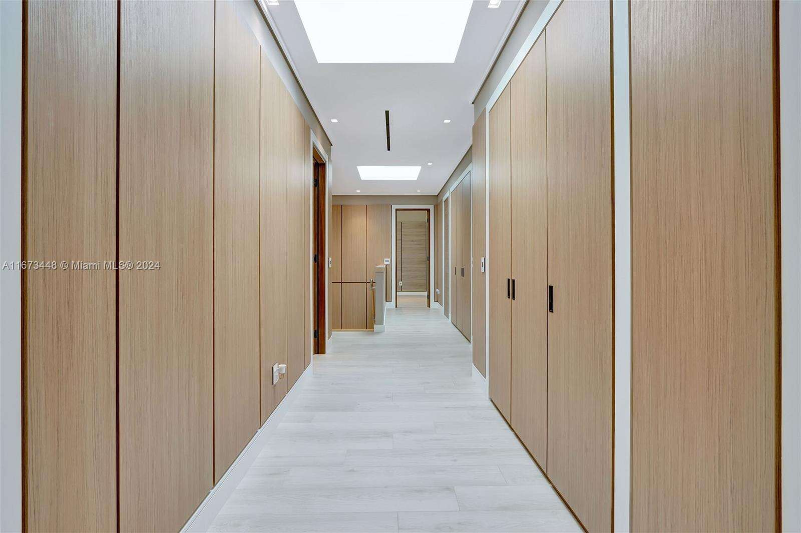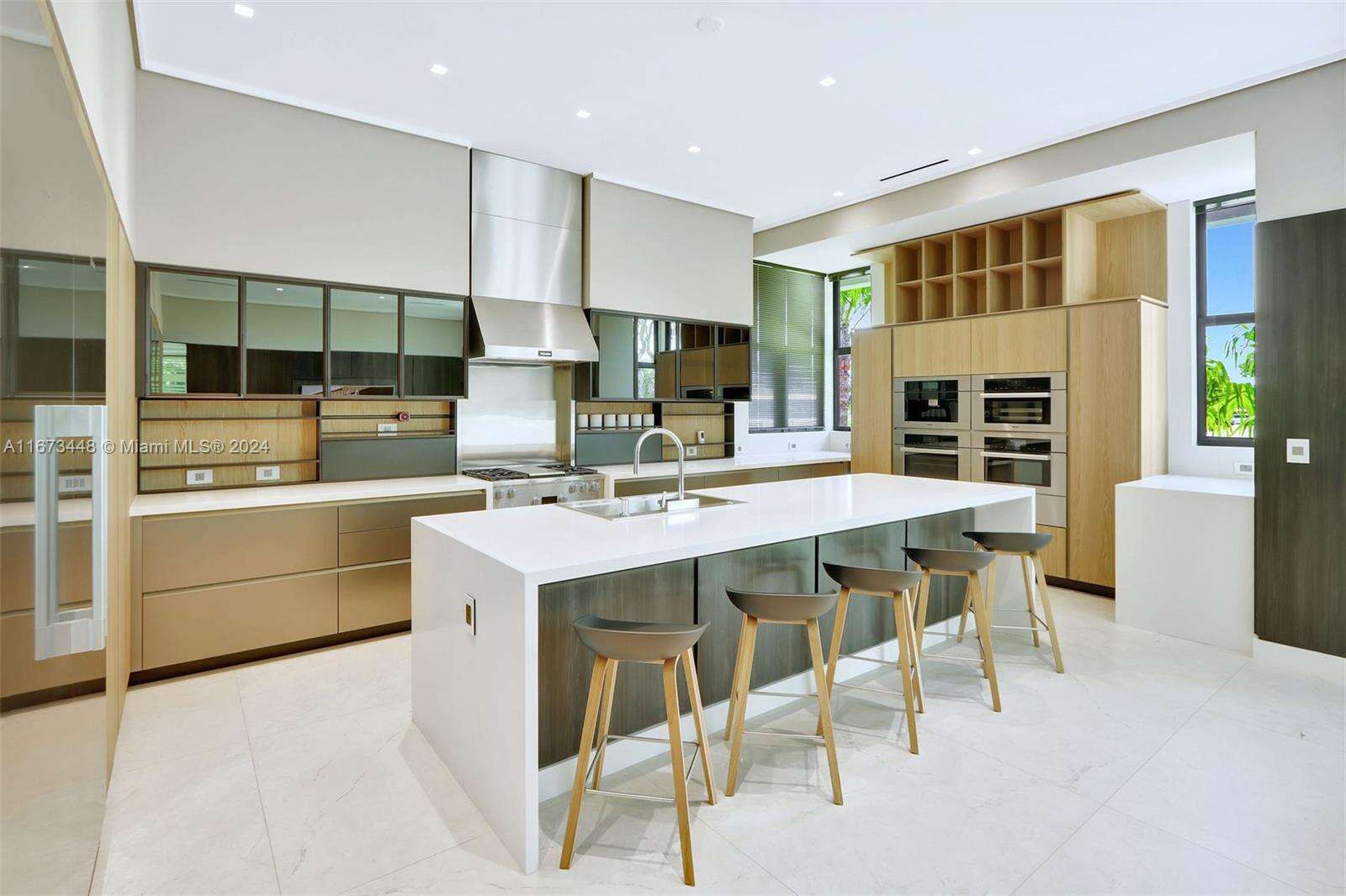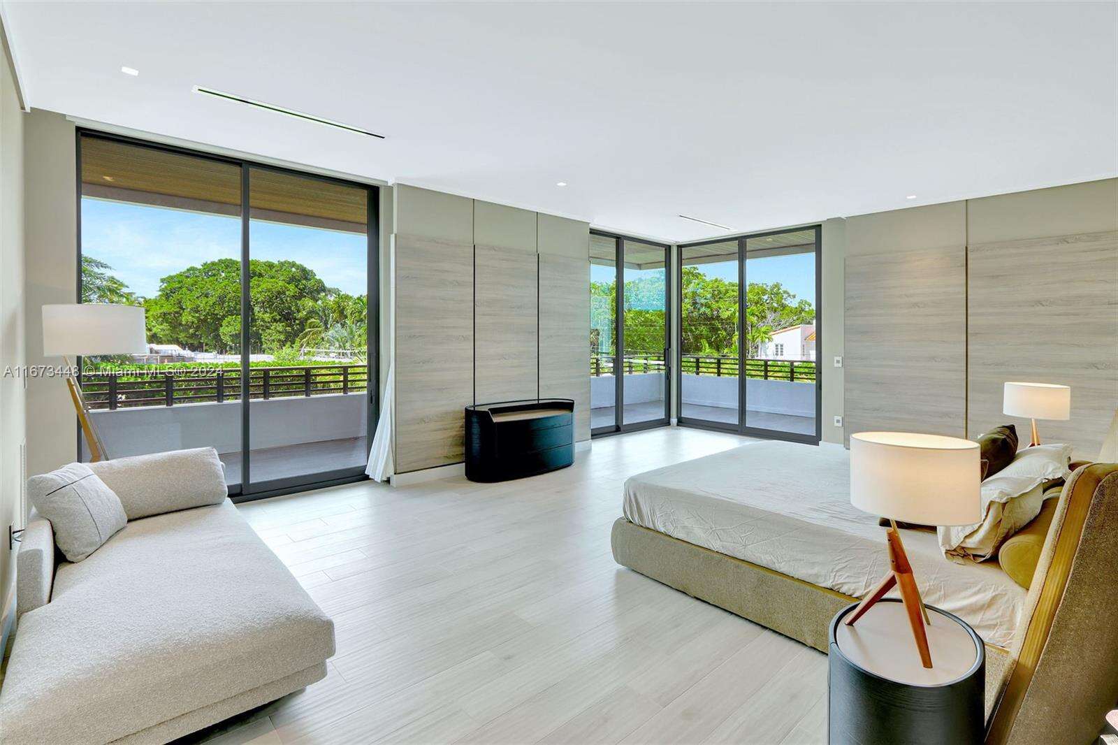 Introducing a new Spec home on an ½ acre corner lot, blending modern design and exceptional craftsmanship. Inside, large-format insulated 11' tall windows fill the first floor w/a flood of natural light, showcasing the lush greenery & pool. Italian Kitchen is Poliform w/ a large island and Miele's appliances. The Kitchen is integrated with the family room, a formal Dining, large reception with home theater seating. On the 2nd floor, a Primary suite is a retreat w/zero-gravity bathtub, Large WIC, & 1300 sq.ft of wraparound balconies, w/4 more suites with their own WIC & Full Bathroom. Total under AC 8,500 s.f. The backyard is a paradise, w/outdoor full Kitchen under AC and a cabana bath. 4-car garage Under AC w /gym, guest or Maid room w/ full bath at the top.